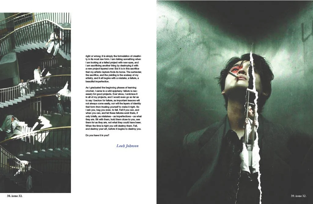 Growing up, failure and imperfection were homonyms. I grapple with creating imperfection by reasoning that art is defined by its risk, yet I still feel hesitation, trepidation even, around the risk of failure. These feelings of inadequacy have haunted my creative ego for years, and I am terrified of risking misinterpretation.